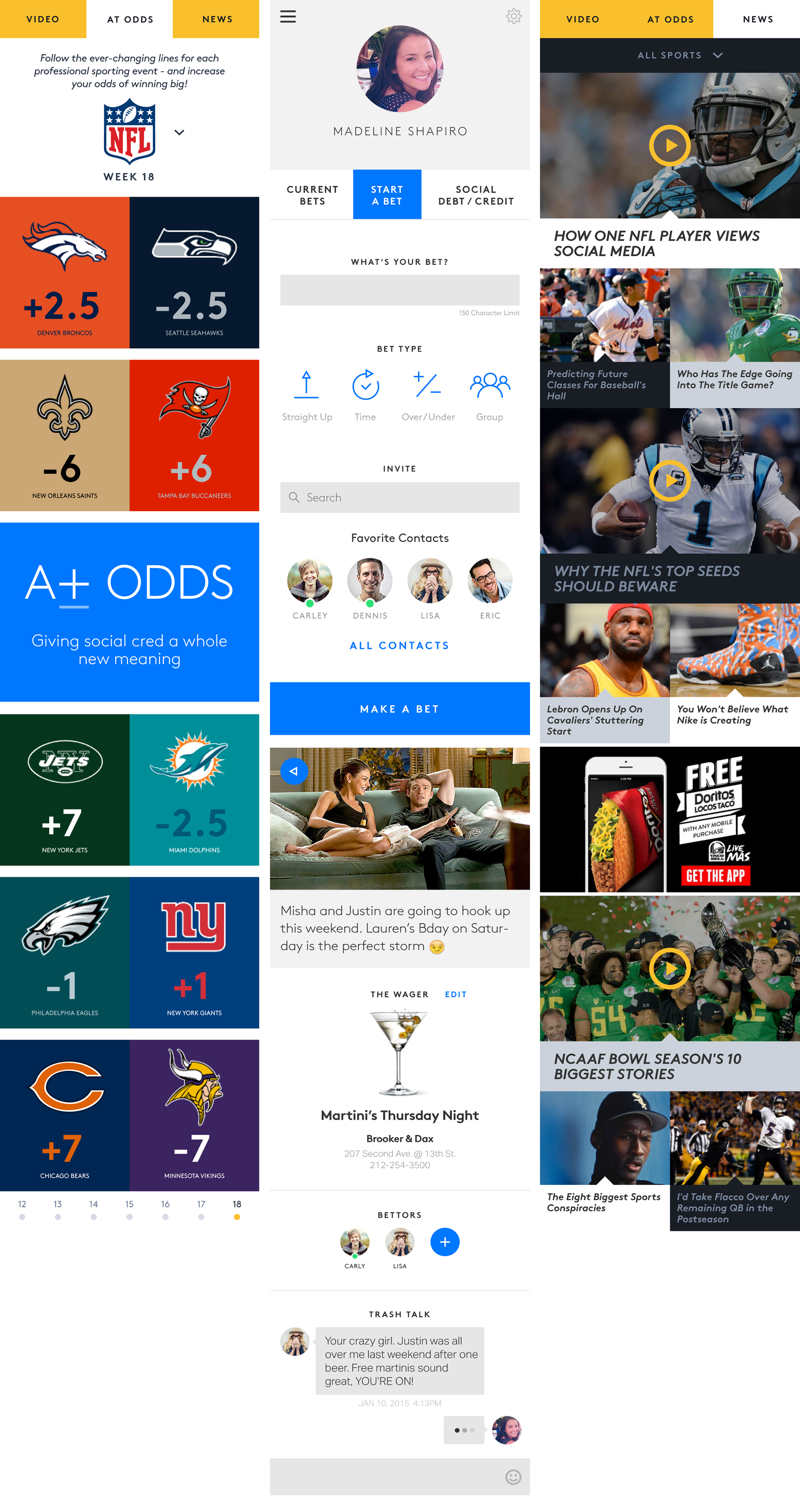 The Aol Sports app includes real-time scores, news, video but the best part is a fun betting app for you and your friends. Start a bet that your friend can't eat those eight sandwiches.